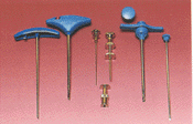 - ① Illinoss aspiration needle (천자용)과 Jamshidi bidpsy needle (생검, 천자용) 두가지가 있다. 천자침은 내침(stylus), 외투침(puncture needle), 보호판(guard)의 3부분으로 되어 있는데 각 침의 끝 부분은 예리하게 되어 있어 천자하기에 편리하도록 되어 있다. 그리 고 보호판으로 일정한 거리에서 멈추게 하여 뼈의 관통을 막도록 되어 있다. 2조 준비한 다.