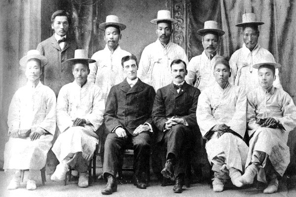 *홍승하 선교사-사진 뒷줄 왼쪽 끝 신사복 입은 분(1905년 10월 제물포교회의 기념사진)