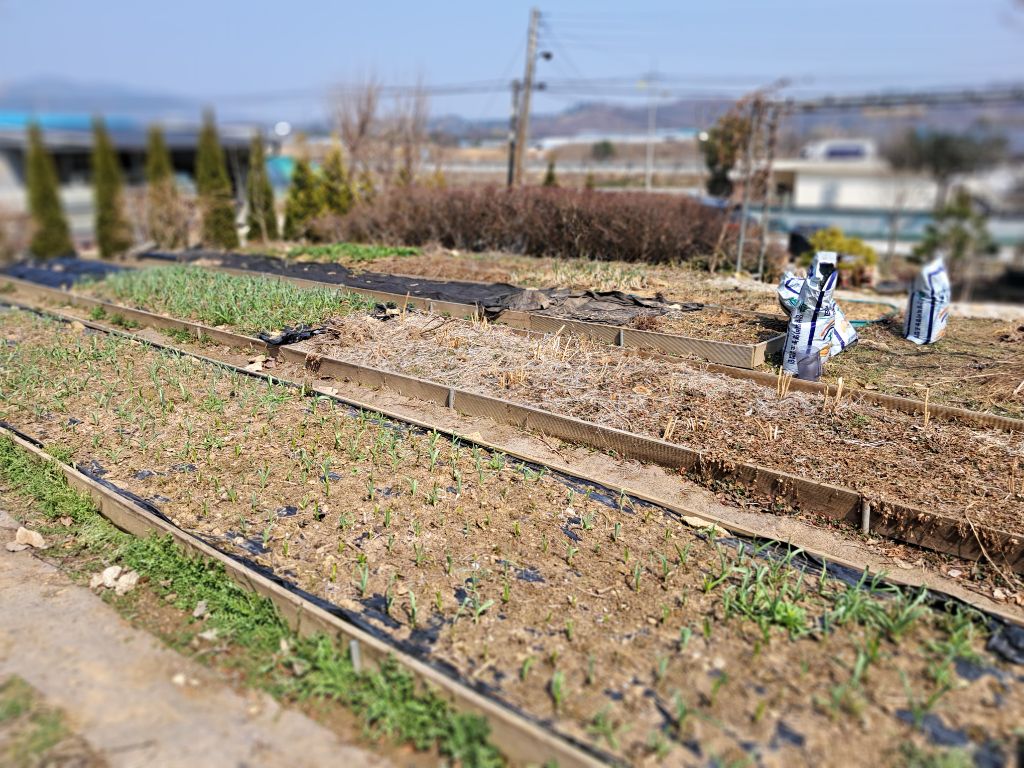 오늘(3. 20. 목)은 춘분계절, 햇빛이 비치고 서늘한 바람도 솔솔 불어 옵니다. 우리는 아침 9시 텃밭, 햇빛뜨락으로 달려 왔습니다. 전날(3. 17. 월) 준비한 마사토도 점검하고, 친환경 농약을 뿌려 줄 계획입니다.