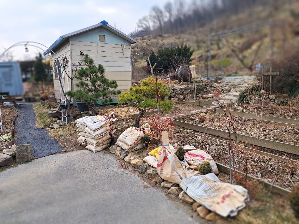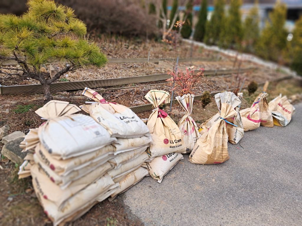 마사토 20포대를구입하였으며 토기 옹기점에서 트럭에 실어다 주었습니다. 햇빛뜨락 입구 꽃밭 가에 내려놓았고, 잔듸에서 바닥으로 옮겨 놓았습니다.