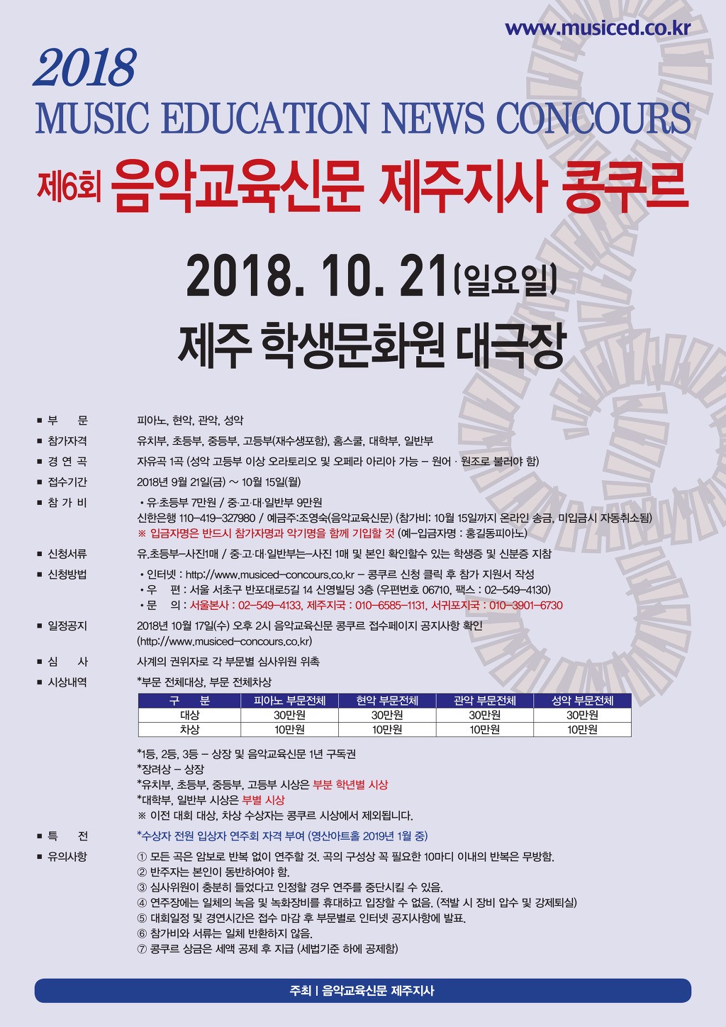 2018년 10월 17일(수) 오후 2시 음악교육신문 콩쿠르 접수페이지 공지사항 확인 (http://www.musiced-concours.co.kr)