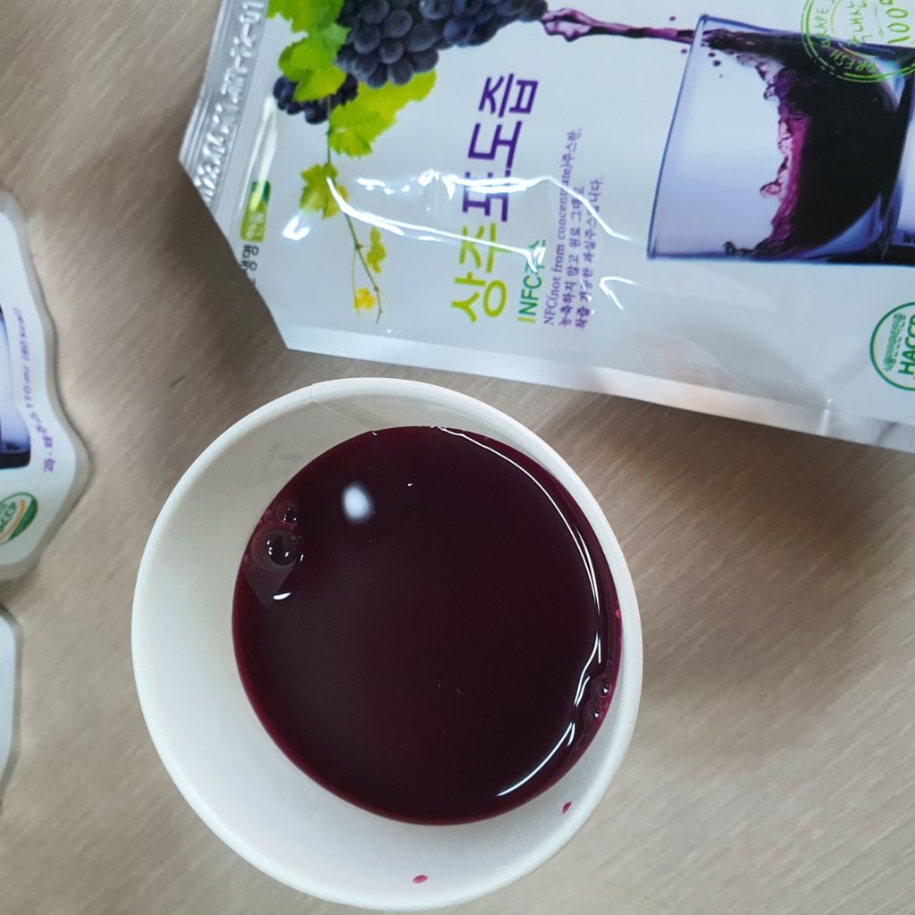 진한 생즙으로 그냥 포도를 먹는 것 보다 더 맛있는 것 같습니다~^^