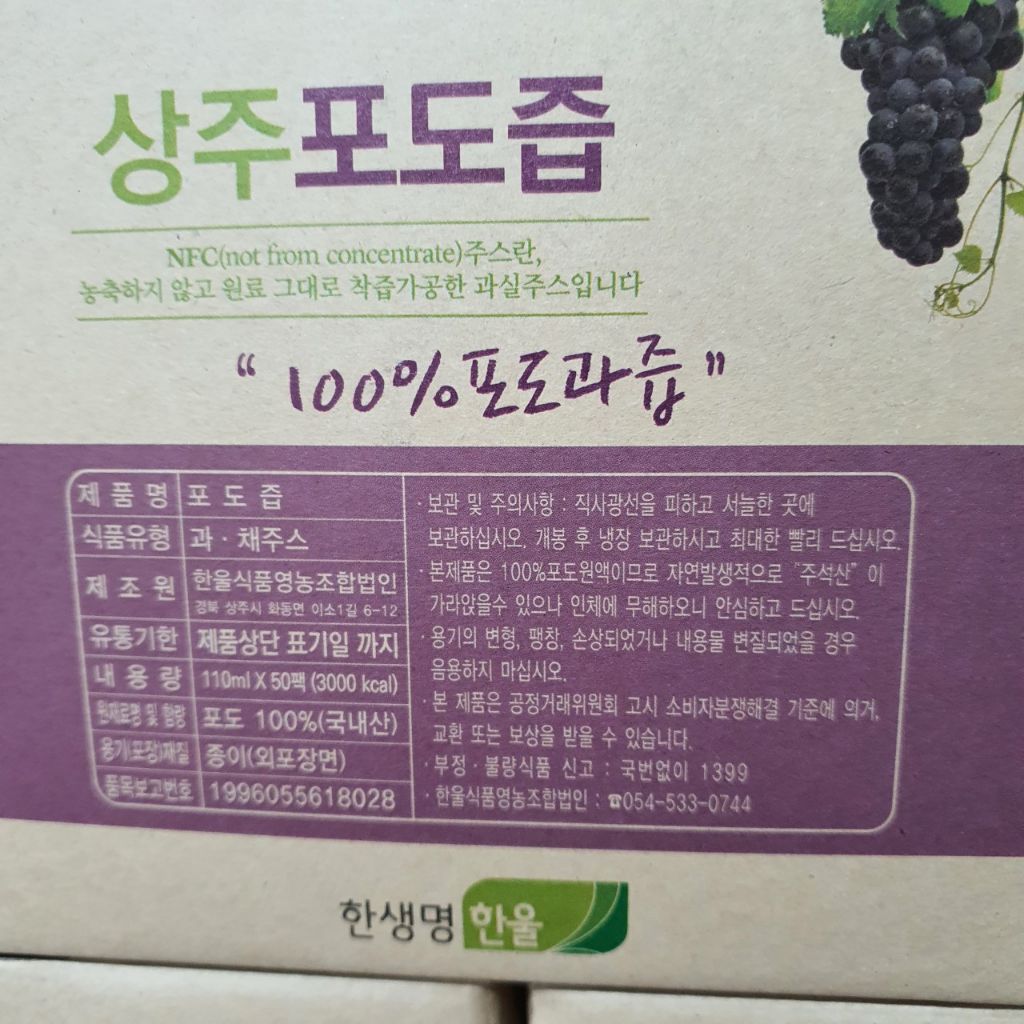 상주 생 포도즙