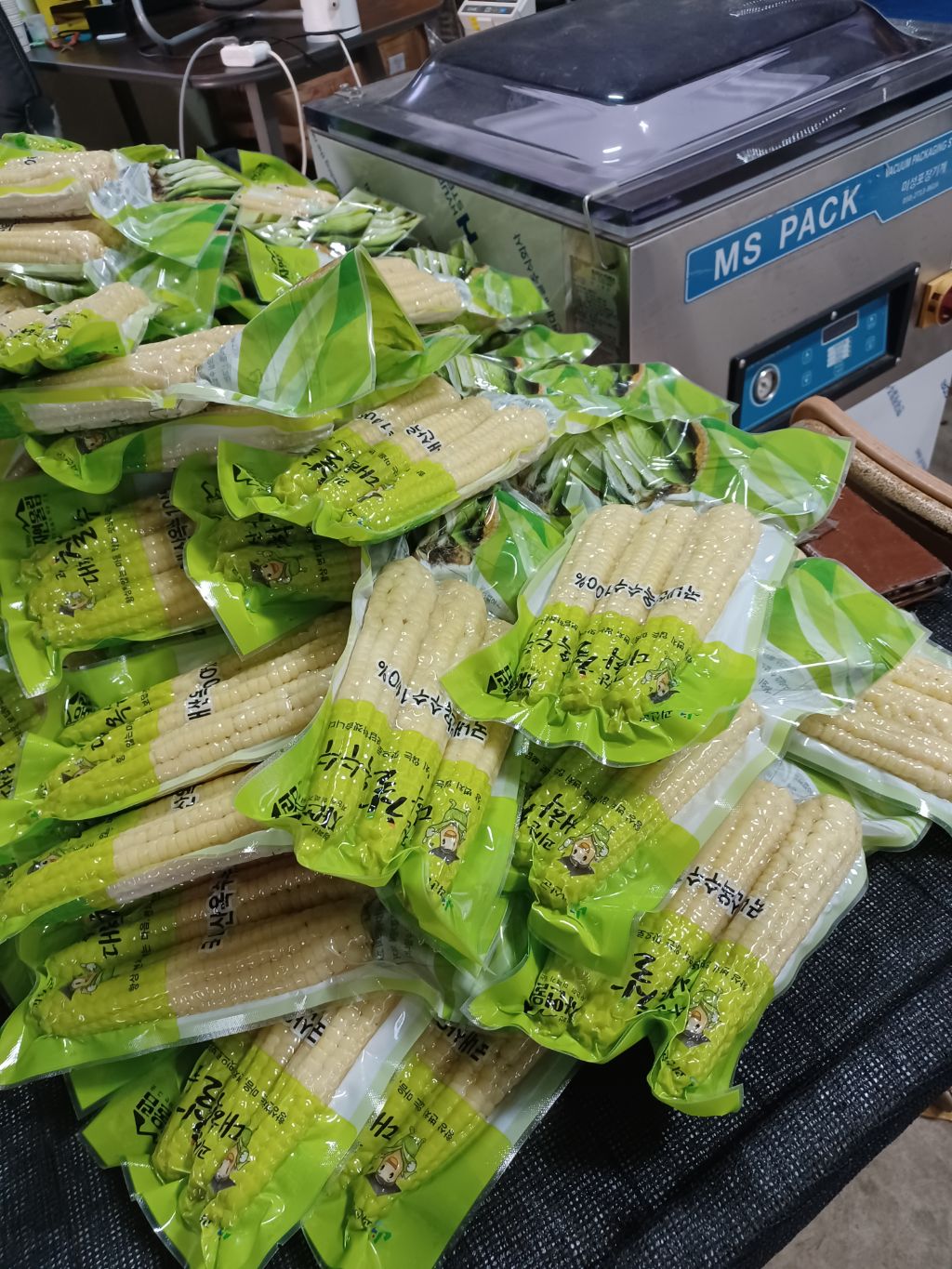 제철 옥수수를 쪄서 급냉시켰어요.