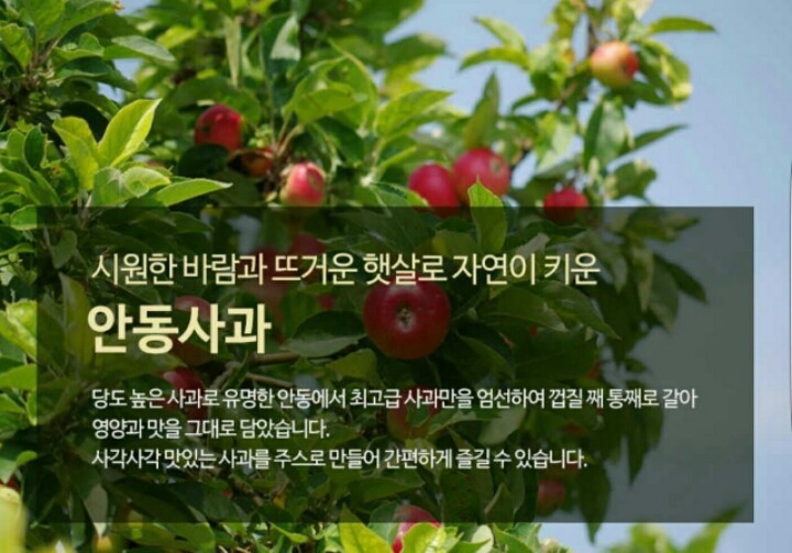 100% 사과 하나 통째로 생즙을 내서 만들었기 때문에 사과의 맛 그대로를 진하게 느끼실 수 있습니다.