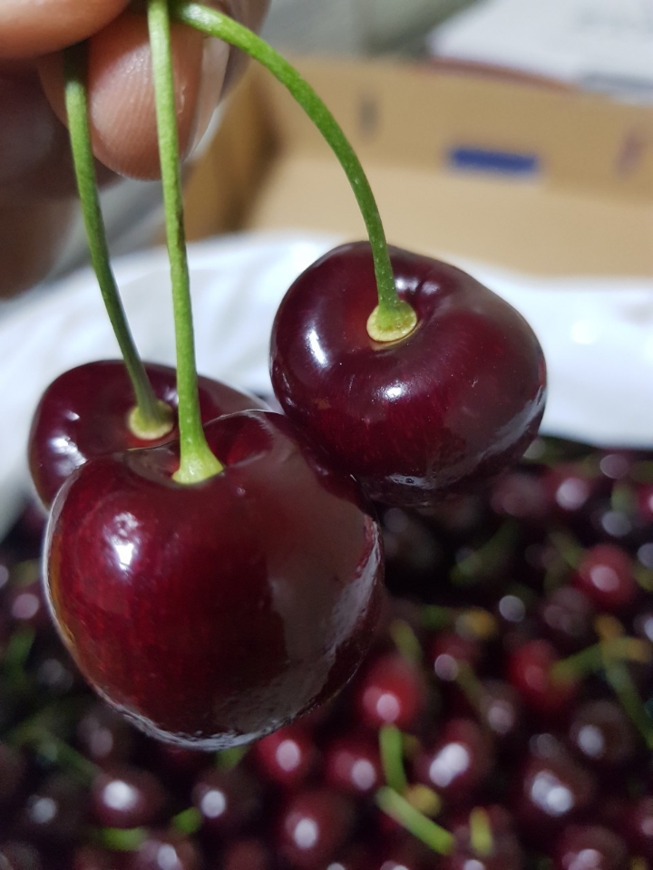 뱅기 타고 항공편으로 통관된 싱싱한 체리가 입고되었습니다.