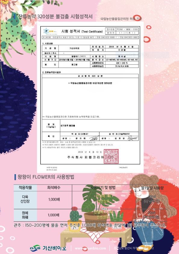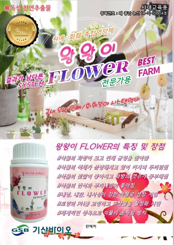 ※ 왕왕이 연구팀이 독일에서 연구한 것을 한국에 맞게 유효물질을 다시 추출 및 개발하여 수년간 화훼농가들과 함께 연구 및 실험한 것으로 그 효과가 입증되었습니다.