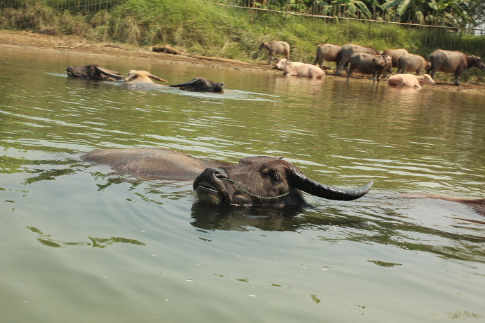 멱 감는 물소의 모습, 대어를 낚으셨습니다. -