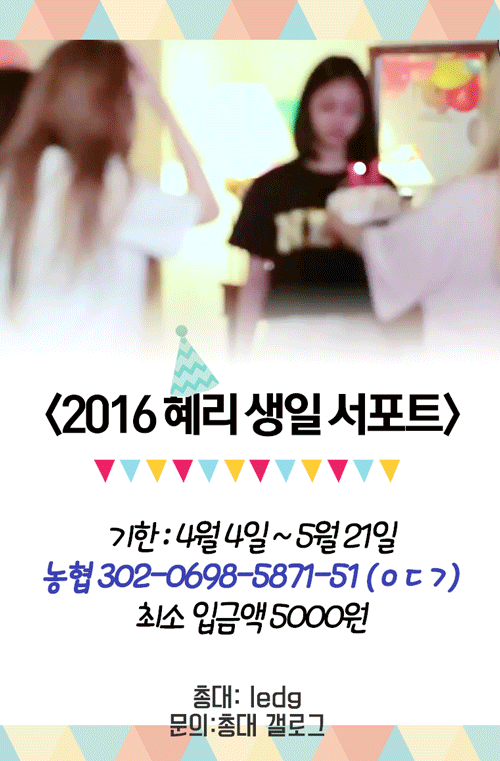 2016 혜리 생일 서포트 공지 작성자ledg|작성시간16.04.12|조회수109 목록 댓글 0 글자크기 작게가 글자크기 크게가 입금 후엔 입금 확인란에 '닉네임 / 이름 / 입금액 / 연락처'를 반드시 적어주세요계자번호가 아래공지랑 다른점 참고해주세요여러분들의 총알이 필요합니다 다음검색 현재 게시글 추가 기능 열기 북마크 공유하기 신고 센터로 신고 댓글 댓글 0 댓글쓰기 답글쓰기 댓글 리스트