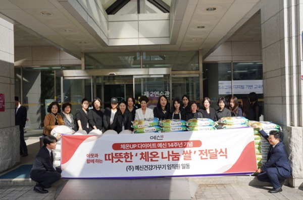 건강관리 및 다이어트 전문업체인 (주)예신건강가꾸기(회장 김모정, 이하 예신)은 지난 2일 창립 14주년을 맞아 대전의 사회복지시설 등에 '체온 나눔 쌀' 전달 행사를가졌다.