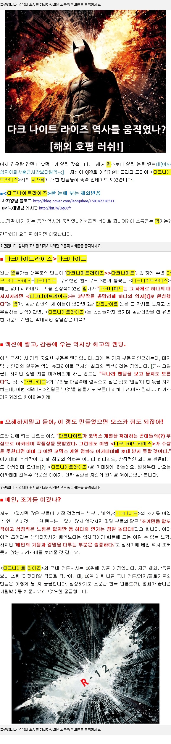 다크나이트 라이즈가 이번 오스카 시상식에서 최우수 작품상을 받지 못한다면, 이후에 나오는 그 어떤 수퍼히어로 영화도 결코, 절대로 오스카 상을 받을 수 없을 것이다.