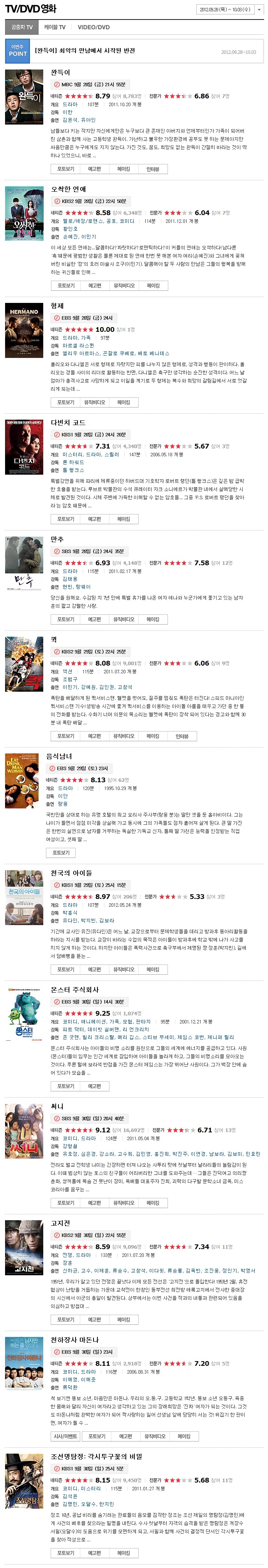 [[영화소식]]추석TV 특선 영화. 안내. ㅋㅋㅋ 작성자식스맨[성현]|작성시간12.09.28|조회수39 목록 댓글 0 글자크기 작게가 글자크기 크게가 거의다 본것들... 못보신 분들. 방콕 뒹구르르르 ㅋㅋㅋㅋ 다음검색 현재 게시글 추가 기능 열기 북마크 신고 센터로 신고 댓글 댓글 0 댓글쓰기 답글쓰기 댓글 리스트