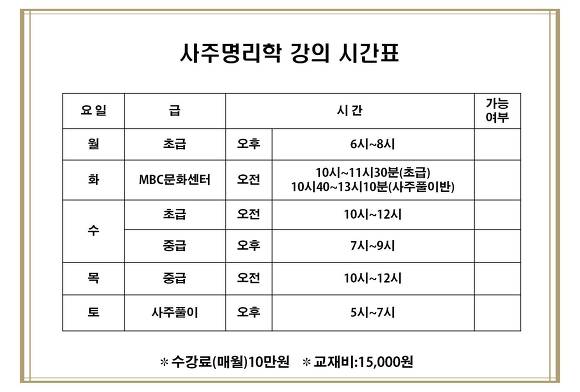 1. 대구MBC문화센터 사주명리학 강좌(매주 화요일)
