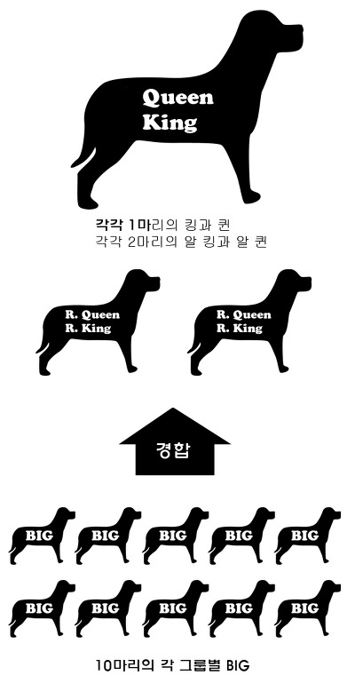 다시 설명 드리면 암조에서 1마리퀸 2마리 알 퀸 수조에서 1마리 킹 2마리 알 킹 이렇게 선발해요...헉헉