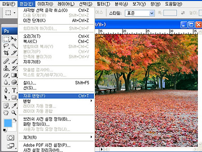 04. [편집]에서 [자유변형]을 선택합니다.(단축키 Ctrl+T)