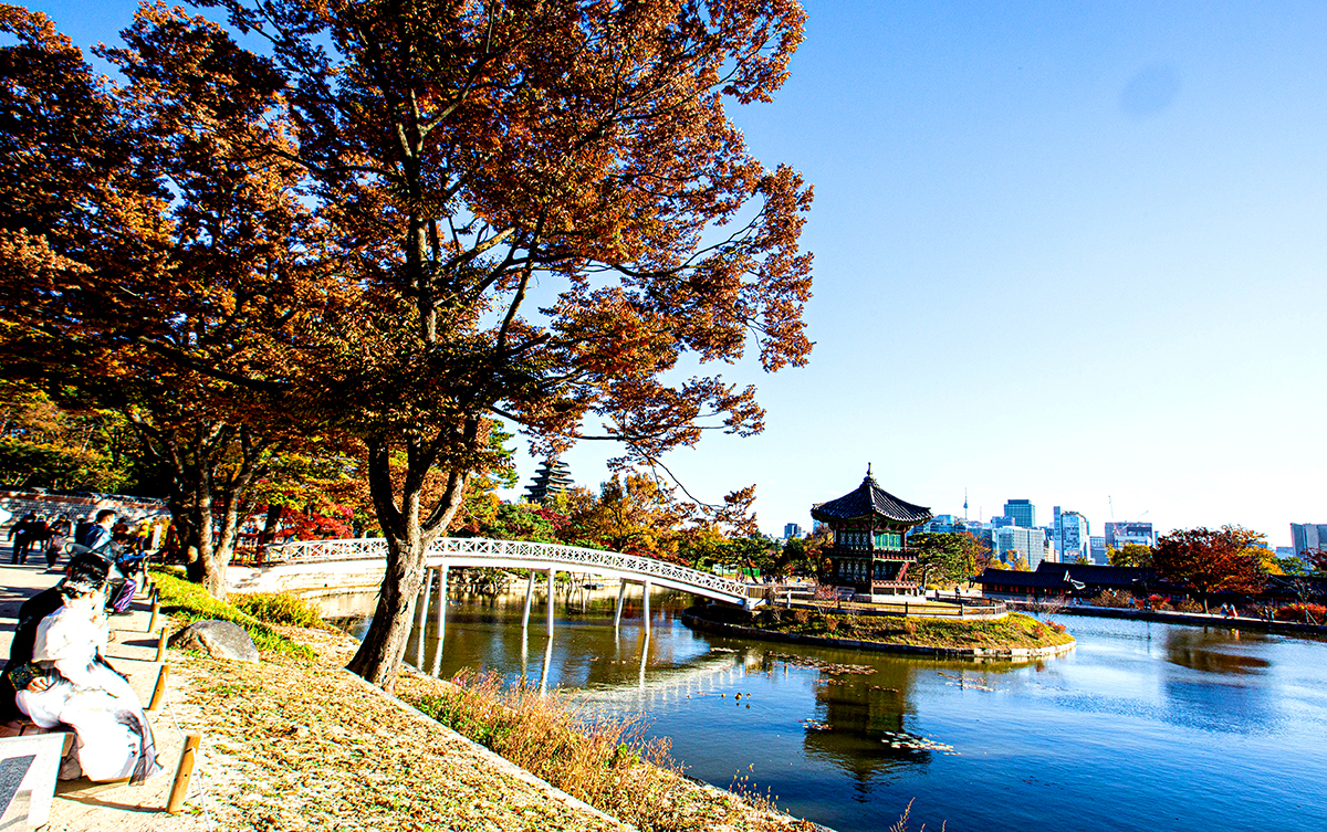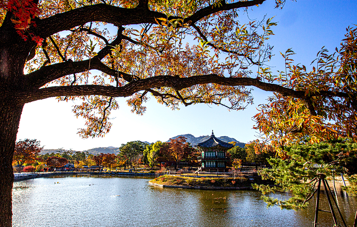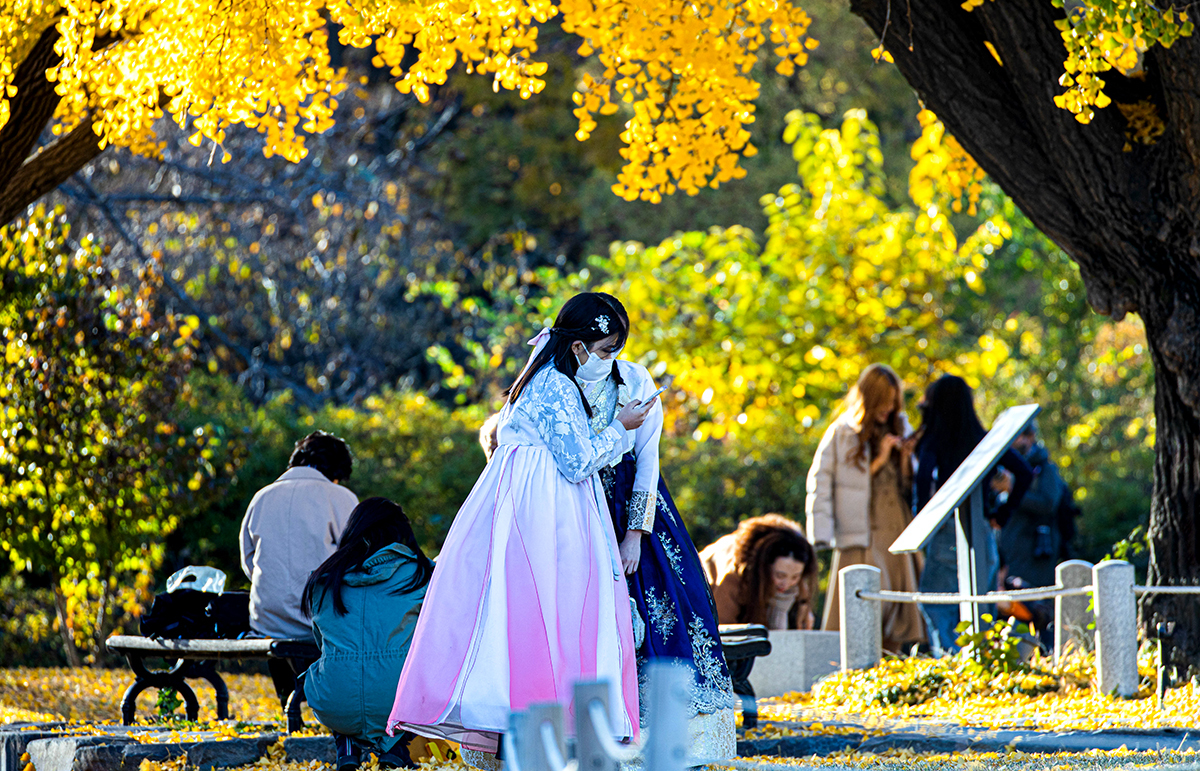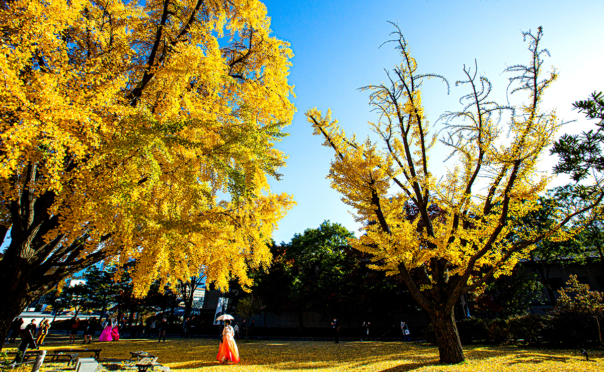 경복궁 경내의 은행나무가 한 철이다.