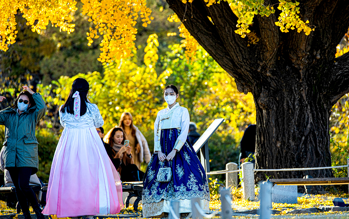 한복을 입으면 무료입장을 한다고 해서인지 아니면 인생샷을 담기 위해서인지