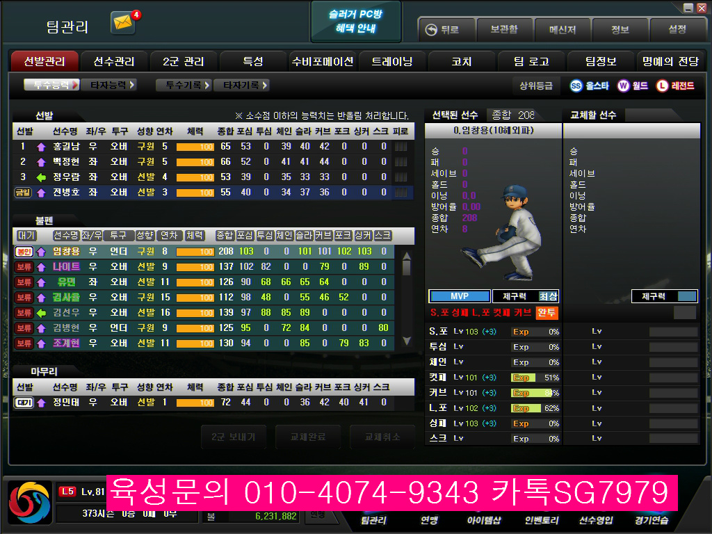 투수봉인 해외파 금 임창용 5구질 구원 11시즌 시뮬작한케릭 추가3시즌 투수육성봉인작