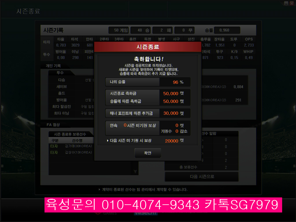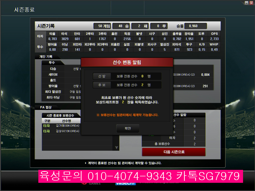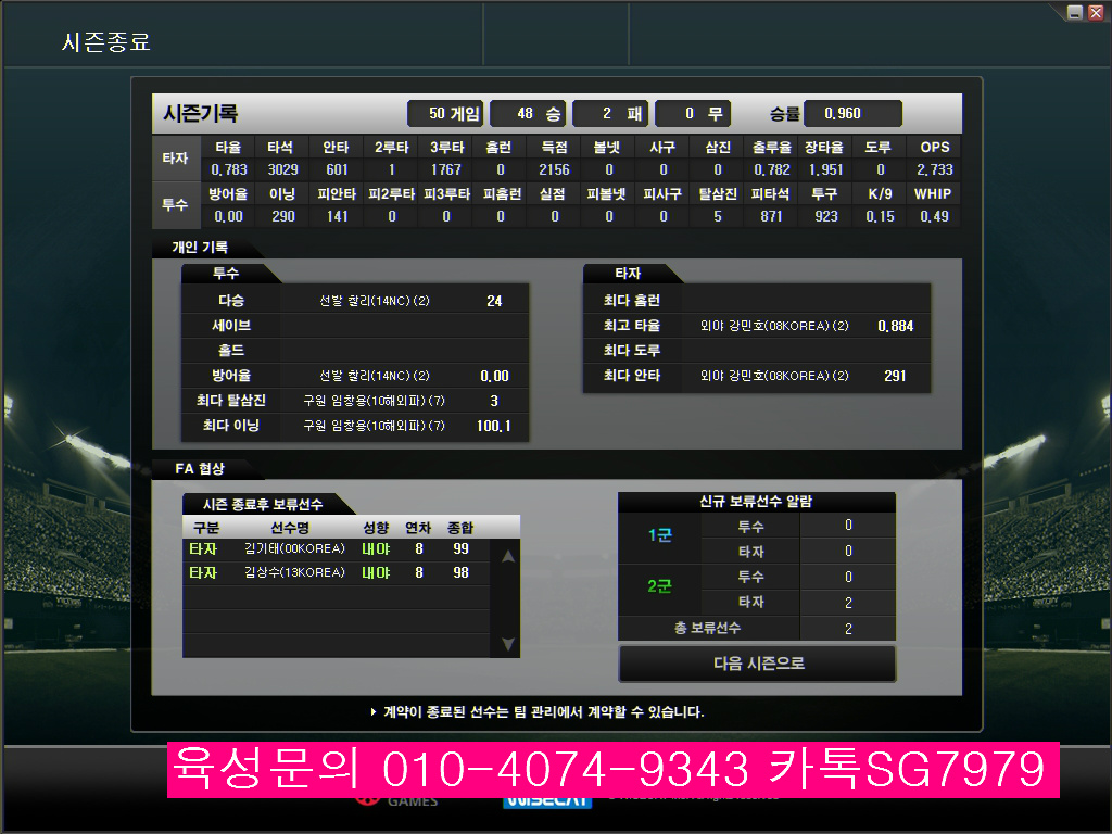 슬러거육성 투타육 3연6회 1-7 5안타 08덱 2시즌 종료