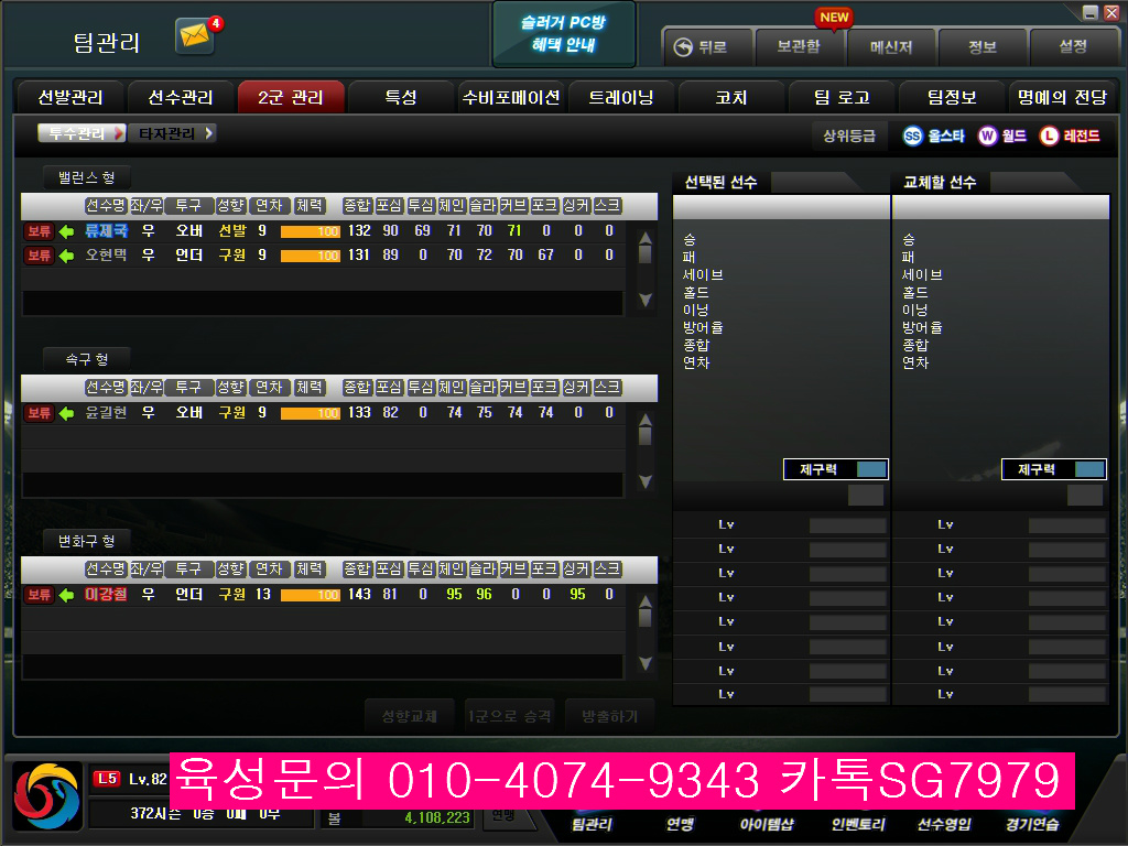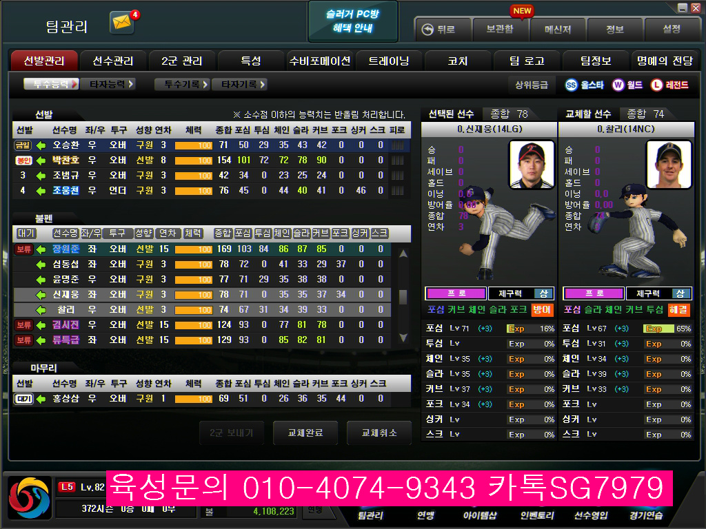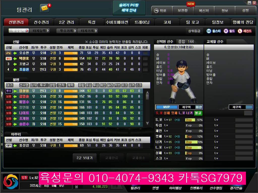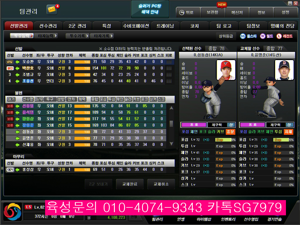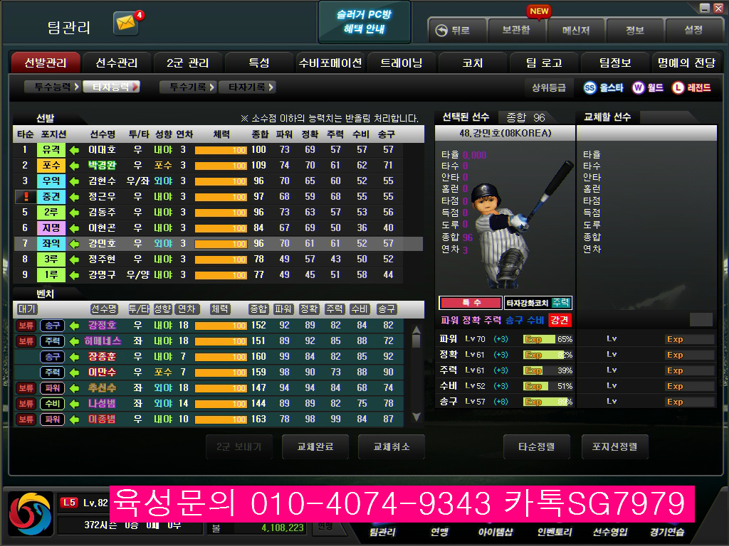 이용구 이택근 이대호 박경완 김현수 정근우 김동주 지명 이현곤 강민호 로 타자 육성이 진행됩니다.
