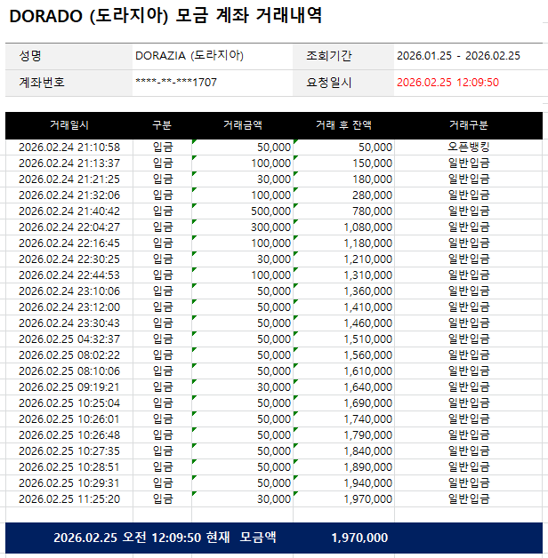 ํ์ฌ๊น์ง 1,970,000์์ด ๋ชจ์์ต๋๋ค!