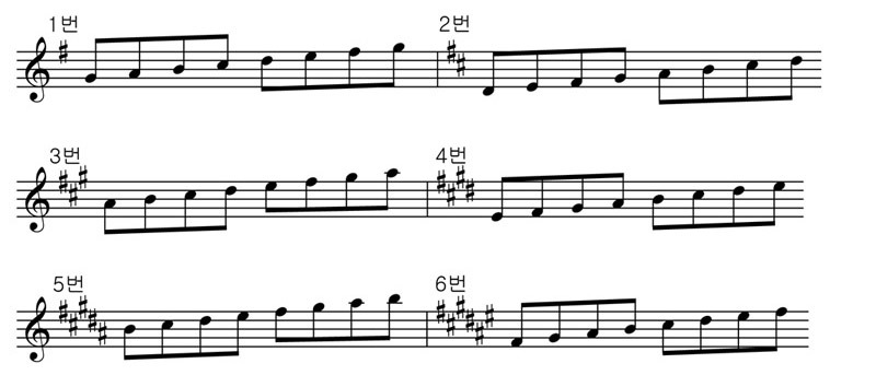 예를들어, 샾이 하나 붙은 악보는 사장조이므로 솔이 근음이고 오선보상의 솔의 자리부터 순서대로 "도레미파솔라시도" 읽어야 된다는 것입니다.