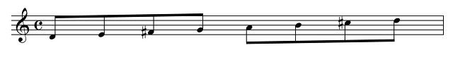 방금 보여드린 "레"를 기본으로 하는 음계는 악보에서 보셨듯이 샾이 2개가 붙어야 기본 8음계의 음간격이 유지 됩니다.