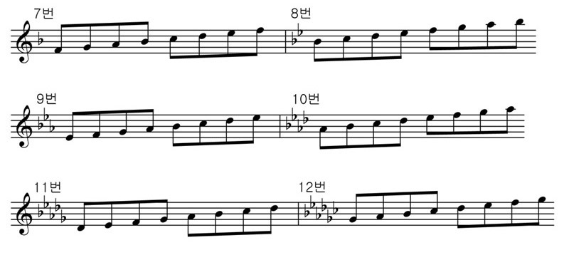 마찬가지로 플랫(내림표)이 붙은 조성들도(7번악보부터)