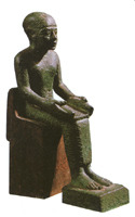 무릎에 파피루스 두루마기를 쥐고 있는, 아임호텝 조각상