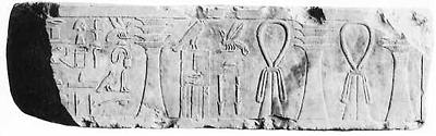 아임호텝의 이름과 직함을 보여주는 명문, 그리고 죠세르의 호루스-이름. 이 명문이 죠세르의 조각장 밑에서 발견되었다. 이것은 아임호텝이 신이 아니라, 실제 인물이었다는 것을 나타낸다. 이 인물이 우리가 아는 요셉인가? 성경은 그가 파라오 밑에 높은 지위였다는 것을 분명하게 밝힌다: