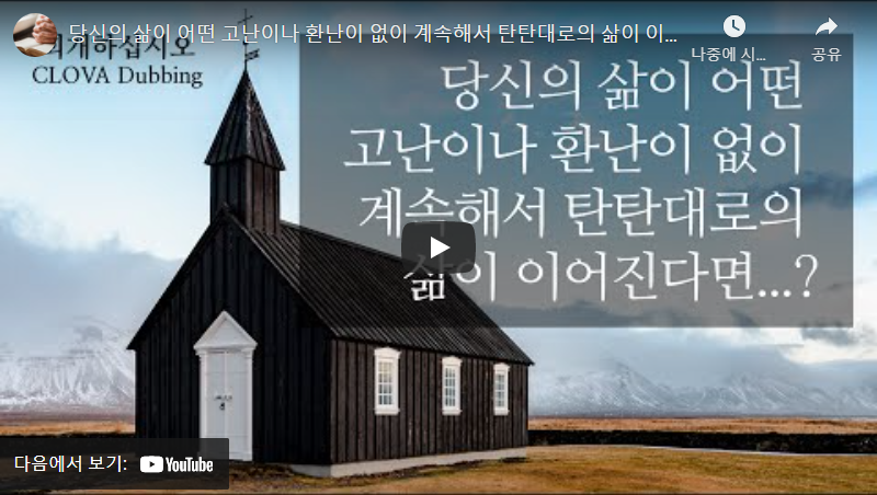 당신의 삶이 어떤 고난이나 환난이 없이 계속해서 탄탄대로의 삶이 이어진다면...? 작성자크리스티나|작성시간21.05.31|조회수17 목록 댓글 0 글자크기 작게가 글자크기 크게가 당신의 삶이 어떤 고난이나 환난이 없이 계속해서 탄탄대로의 삶이 이어진다면...? 다음검색 현재 게시글 추가 기능 열기 북마크 공유하기 신고 센터로 신고 댓글 댓글 0 댓글쓰기 답글쓰기 댓글 리스트