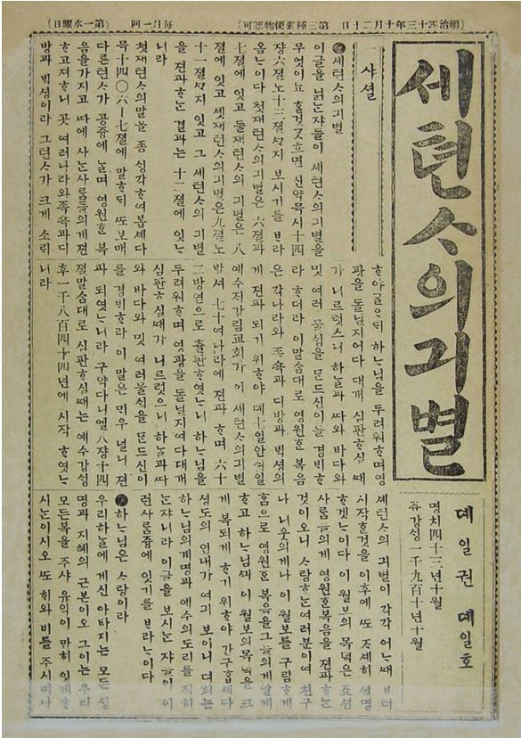 결국 제대로 된 잡지는 1910년 10월에 만든 <세천사의 기별>이다.