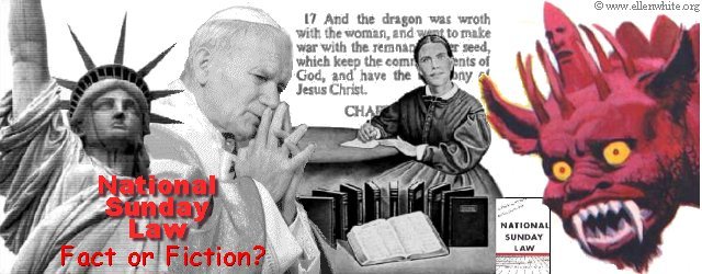 바로 그 부류에 속한 사람들은 급속히 퍼져가는 타락적 풍조가 소위 “그리스도인 안식일”(일요일을 가리킴)을 모독하는 데서 기인된다는 것과 일요일 준수를 강요함으로 사회의 도덕이 크게 개선될 것이라고 주장한다. 이 주장은 참된 안식일의 교리가 가장 널리 전파된 미국에서 특별히 강조된다. ― 각 시대의 대쟁투, 587(영문)(1911).