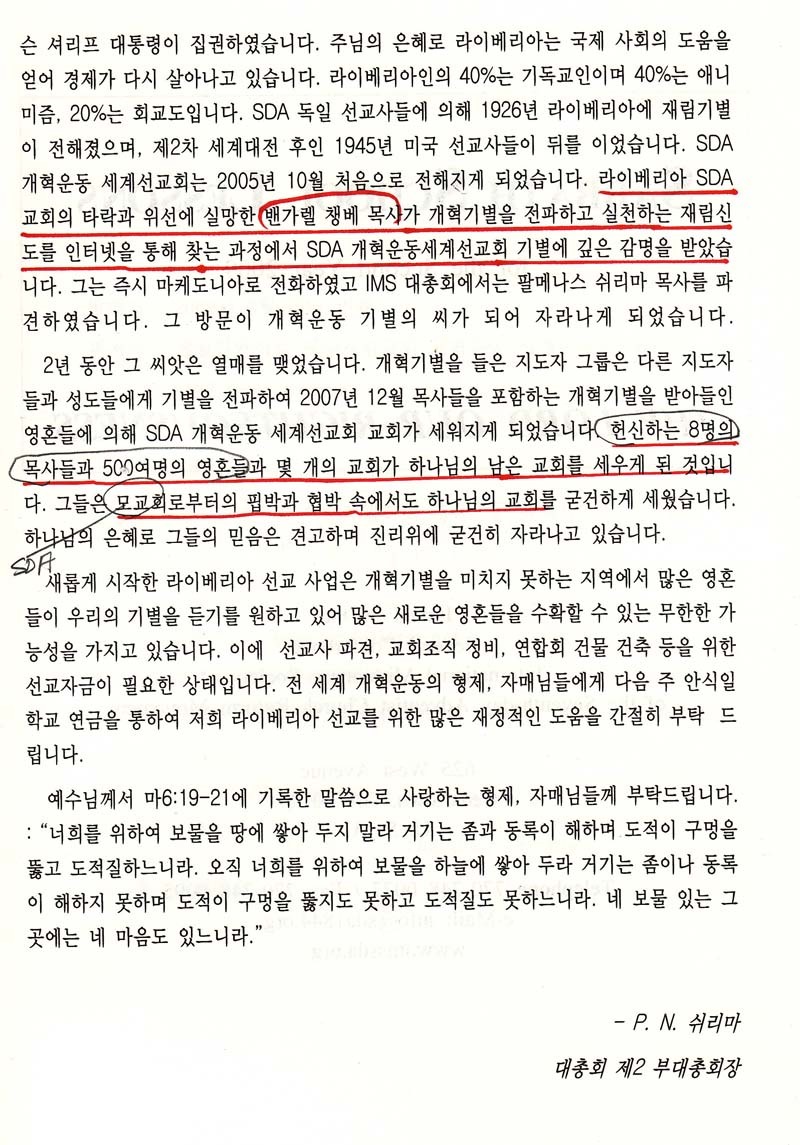 라이베리아 소식-SDA연합회장이 개혁운동에 입교함