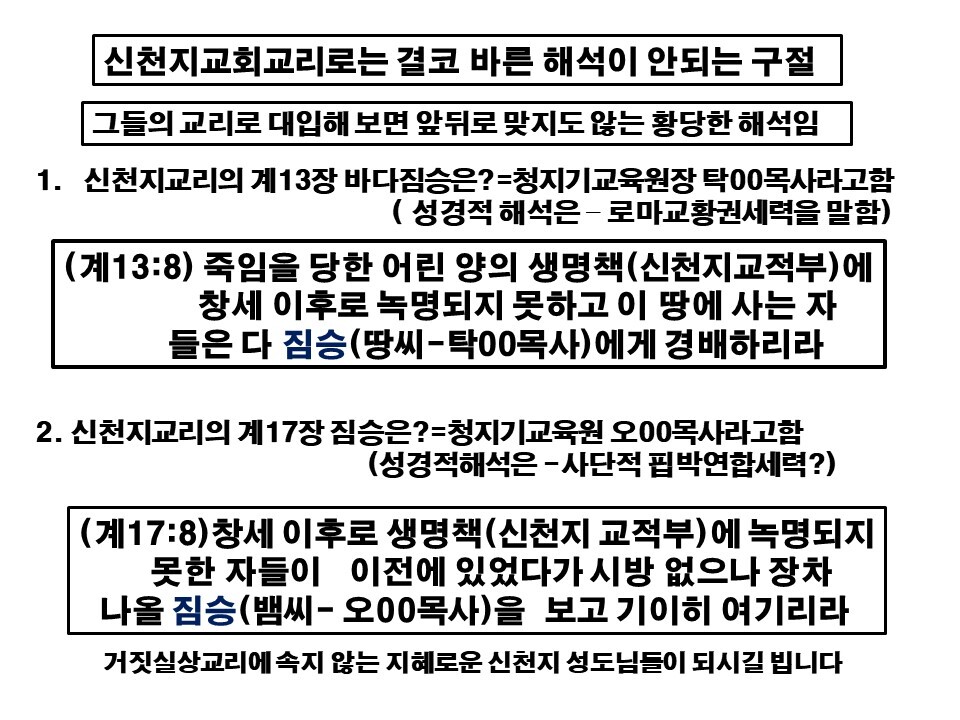 신천지교리의 심각한 오류와 문제점 작성자연합운동|작성시간21.12.12|조회수1,491 목록 댓글 0 글자크기 작게가 글자크기 크게가 다음검색 현재 게시글 추가 기능 열기 북마크 공유하기 신고 센터로 신고 댓글 댓글 0 댓글쓰기 답글쓰기 댓글 리스트