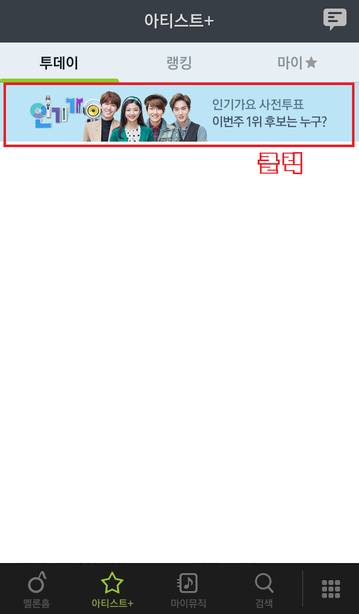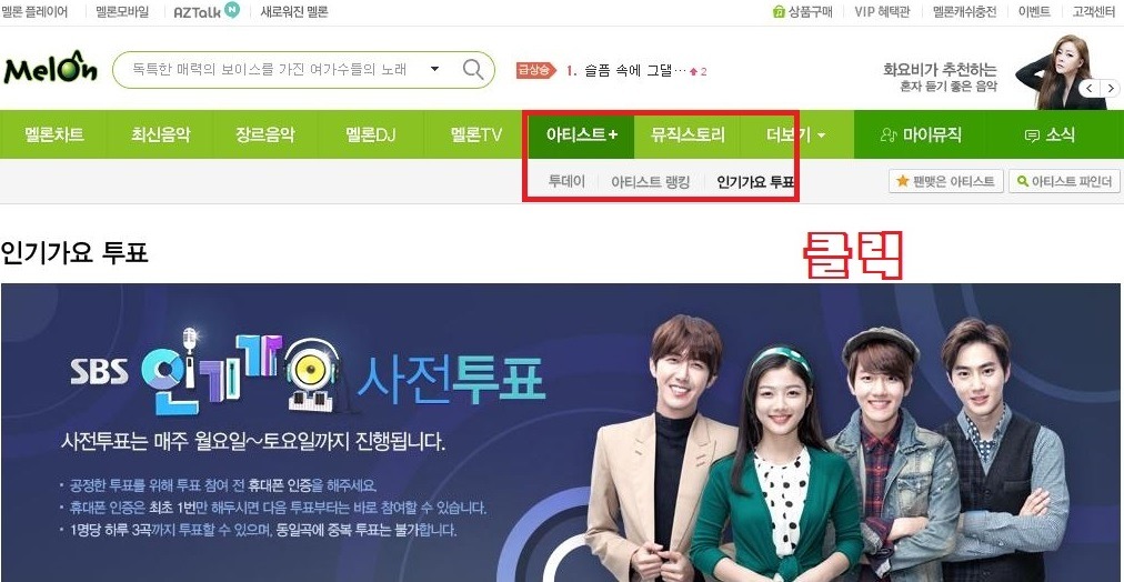 2. 아티스트 + 에서 인기가요 투표 클릭