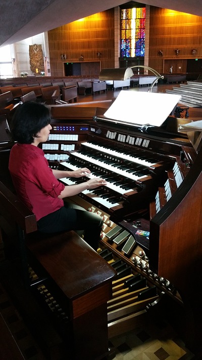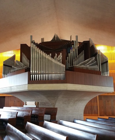 그리고 오르간입니다. 아마 가장 특이하게 생긴 오르간의 하나일 겁니다. 불꽃 모양, 어쩌면 성화대 같은 모양이지요. 실제로 보면 그리 큰 것은 아닌데, 소리는 엄청 큽니다. 낭만곡에 더 어울려 보였습니다. 이탈리아 Ruffatti 오르간입니다.