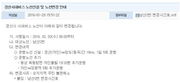 그동안 자인에서 청도 동곡으로 넘어가려면 시외버스를 이용하거나 갈지리에서 청도버스로 환승을 해야 했는데 이제는 바로가는 시내버스가 개통되네요. 자인-동곡 넘어가는 도로가 확장공사 되고 소요시간이 단축되었습니다.