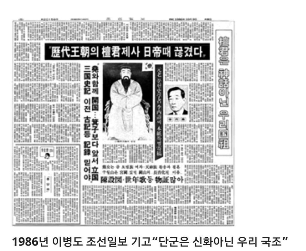 식민사학의 거두 이병도가 죽음을 삼년 앞둔 시점에서 평생 자신의 학설을 뒤집고 단군 조선의 실재를 인정한 기사로 1986년 10월 9일 조선일보에 실린 글이 있습니다. 당시 사학계의 거두였던 두계 이병도의 이 참회기사는 조선일보 특집기사로 1면에 실릴만큼 사회의 파장은 엄청났습니다.