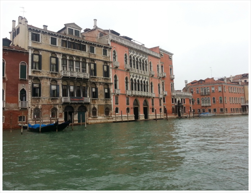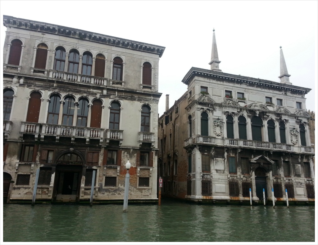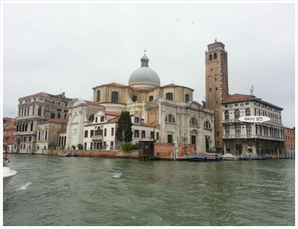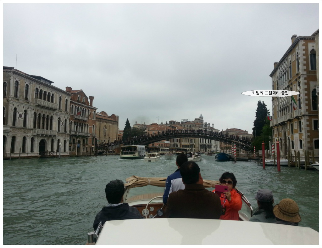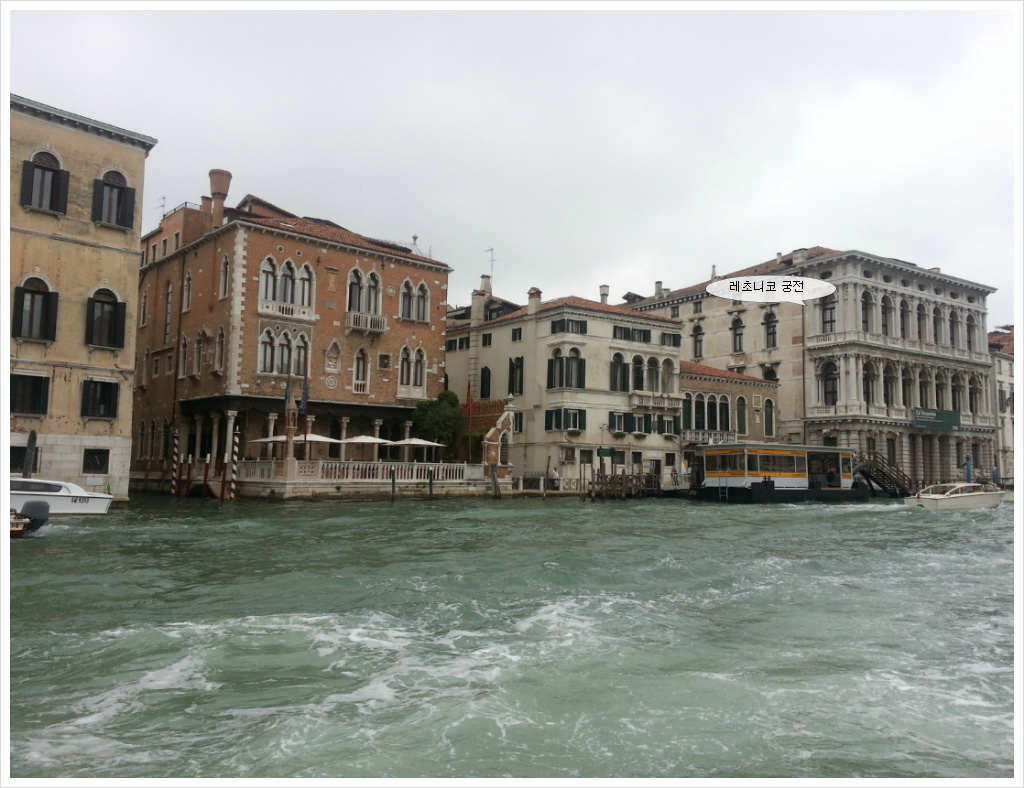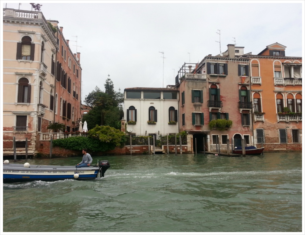 살루테 성당 앞을 지나 대운하에 진입한 후 계속하여 눈앞에 펼쳐진 광경은 언젠가 그림으로 보았던 바로 그 모습이었다. 도심을 흐르는 강 같은 대운하의 양안으로 각각 다른 양식으로 지어진 중세풍의 유서 깊은 건축물들이 즐비하여, 시야에 들어오는 순간순간의 장면이 모두 한 폭의 그림이었다. 오랜 세월에 건물이 낡고 빛이 바래서 우중충해 보이는 부분도 있었지만 전체적인 아름다운은 여전하였다. 선두에 탑승한 가이드는 수신기를 통해 “이쪽을 보세요, 저쪽을 보세요.”를 반복하며 특정 건축물의 이름과 유래에 대해 설명하였다. 우리는 가이드가 손짓하는 방향을 따라 휴대폰 카메라를 들이대며 연신 셔터를 눌러대었지만 그 대상이 너무 많아 곧 지쳐버렸다.