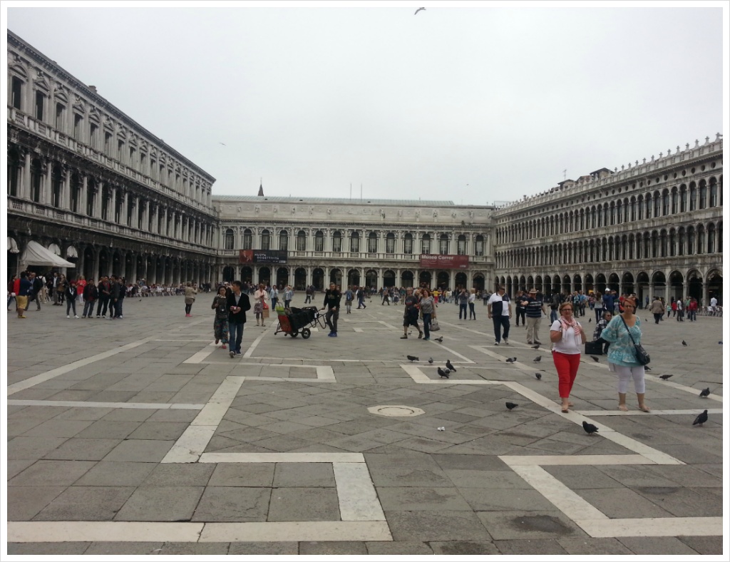 곤돌라에서 내린 우리는 비둘기가 놀고 있는 산마르코 광장 안으로 들어가 현지가이드로부터 주변 건축물 및 유적에 대한 설명을 듣고 각자 흩어져서 자유롭게 관람하는 시간을 가졌다. 산마르코 광장은 산마르코 대성당의 앞마당으로 베네치아의 정치적, 종교적 중심지 역할을 하던 광장이다. 한때 베네치아를 점령했던 나폴레옹은 산마르코 광장을 보고 ‘유럽에서 가장 우아한 응접실’이라고 했다고 한다.