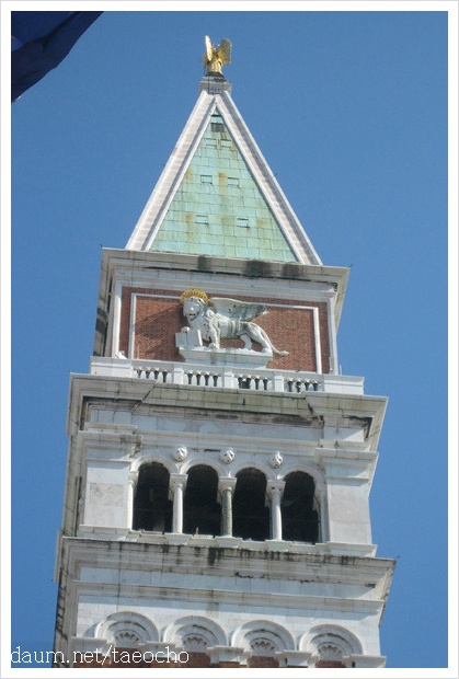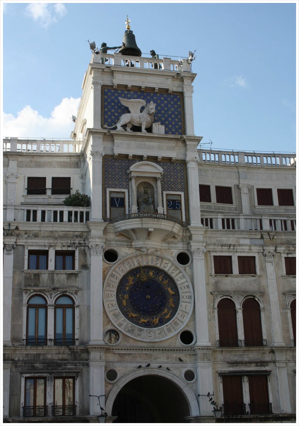 프로쿠라티에 베키에 건물 오른쪽 끝에는 1499년에 완공된 메르체리아라고 불리는 시계탑이 있다. 시계탑 꼭대기에 있는 청동상이 정각마다 종을 친다고 하는데 내 눈으로 직접 확인하지는 못했다. 산마르코 성당 본채와 독립해서 광장 한편에 우뚝 솟아있는 종탑은 원래 12세기에 세워졌으나 붕괴와 복원을 거듭하다가 1912년 완전히 무너졌고, 그 이후에 현재의 종탑을 새로 건축하였다고 한다. 종탑 위에는 베네치아 전체 모습을 감상할 수 있는 전망대가 있다. 다른 곳은 몰라도 이곳 종탑 전망대만큼은 꼭 올라가서 베네치아의 특별한 낭만을 느꼈어야 하는데 그러지 못한 것이 너무나 아쉽다.