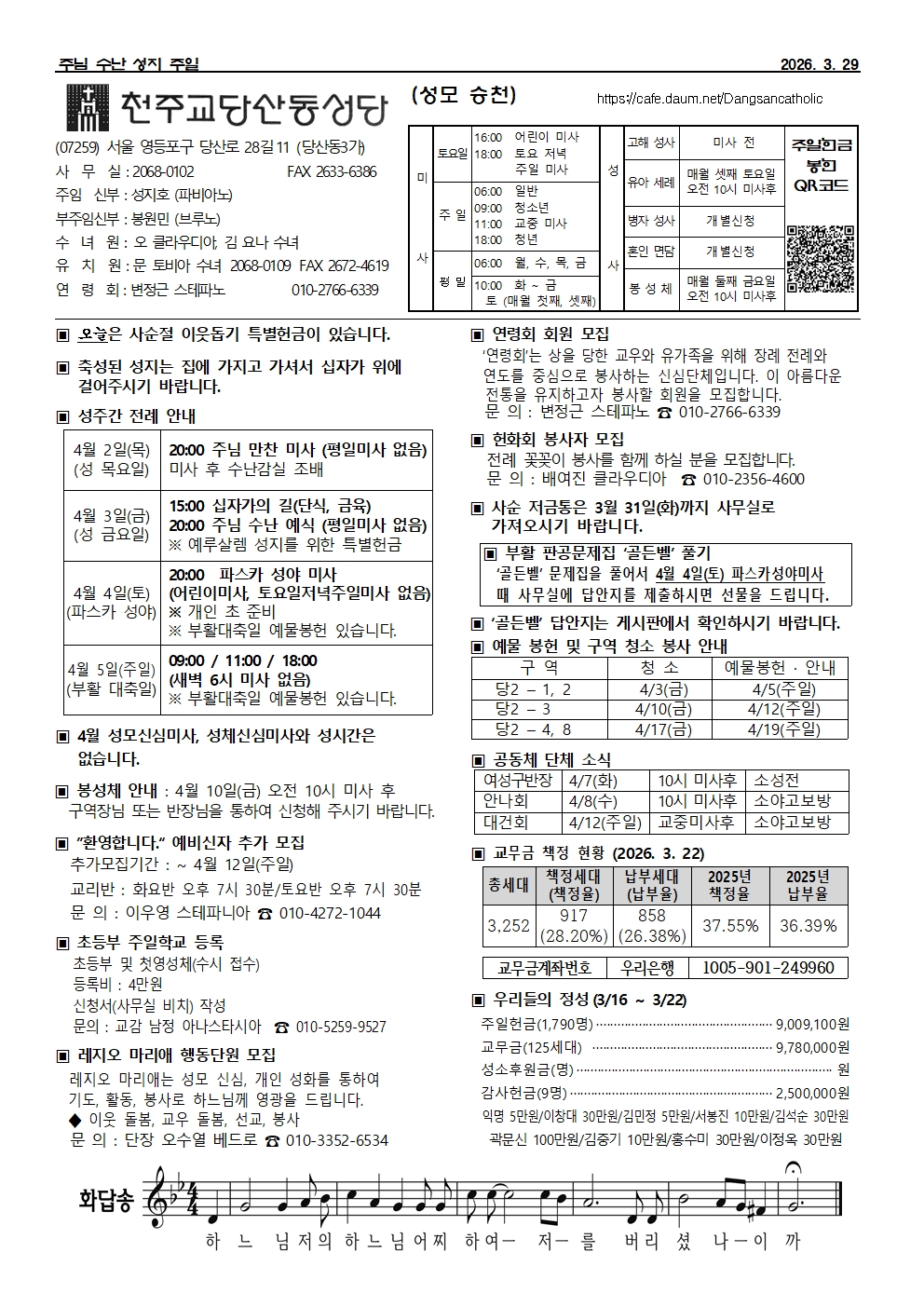 주님 수난 성지 주일 작성자이옥희 아네스|작성시간26.03.25|조회수532 목록 댓글 0 글자크기 작게가 글자크기 크게가 다음검색 현재 게시글 추가 기능 열기 북마크 공유하기 신고 센터로 신고 댓글 댓글 0 댓글쓰기 답글쓰기 댓글 리스트