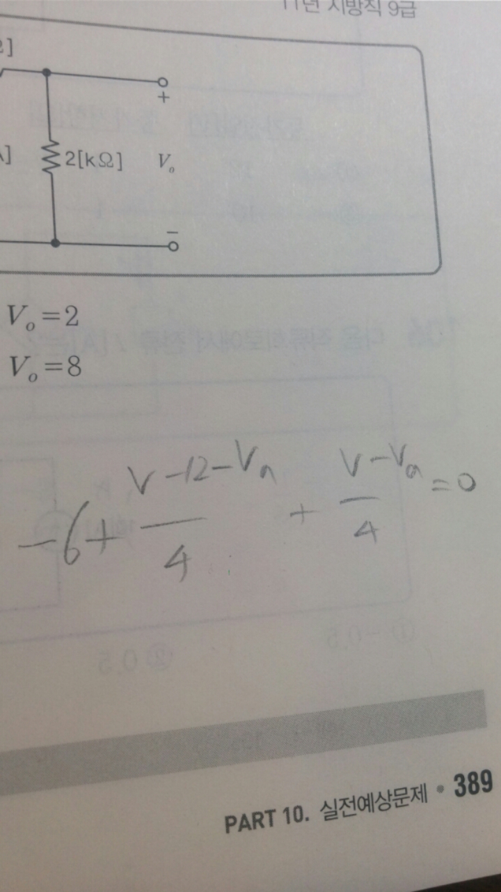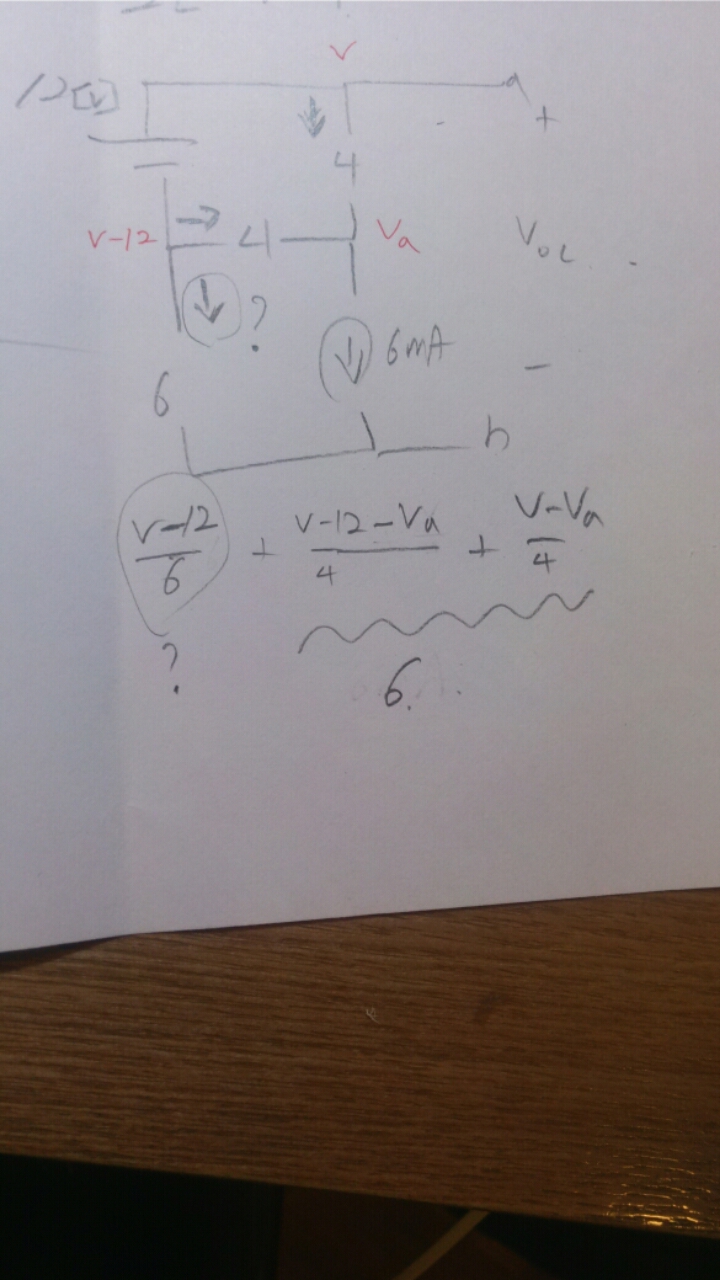v-12에서 나가는방향의 전류가 (v-12)/6 인것은