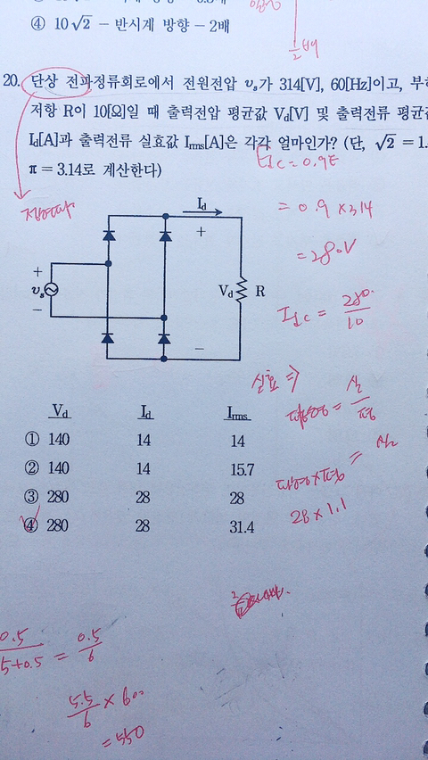 0.9E가 아닌 정현파 평균인 (2/파이)*E최대 로 못푸나요? E자리에 전원전압을 넣으면 안되나요??.. 이렇게 풀면 답이 안나와서요.. 제가 무슨 실수를 하는지 아시는 분 ㅠㅠㅠ 알려주세요