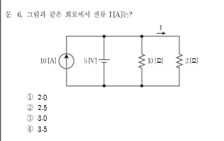 답은 2번인데 2옴에 5볼트가 걸려서 2.5암페어가 나오는건지 정확한 풀이가 궁금합니다...