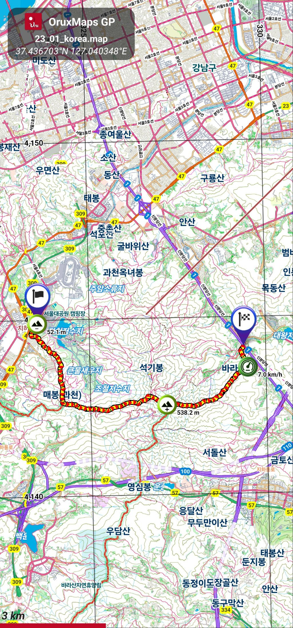 3.트래킹 코스: 대공원역 - 과천매봉 - 이수봉-옛골 (11km)