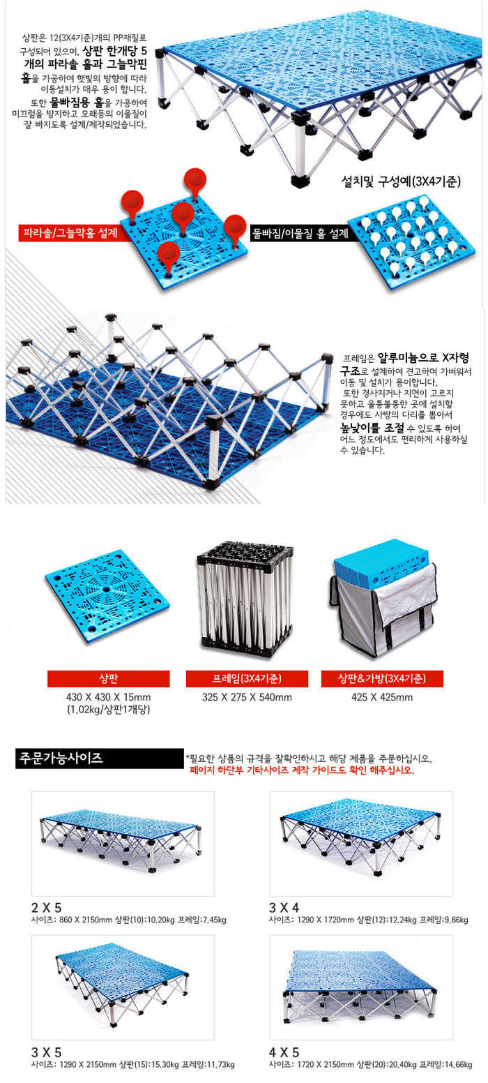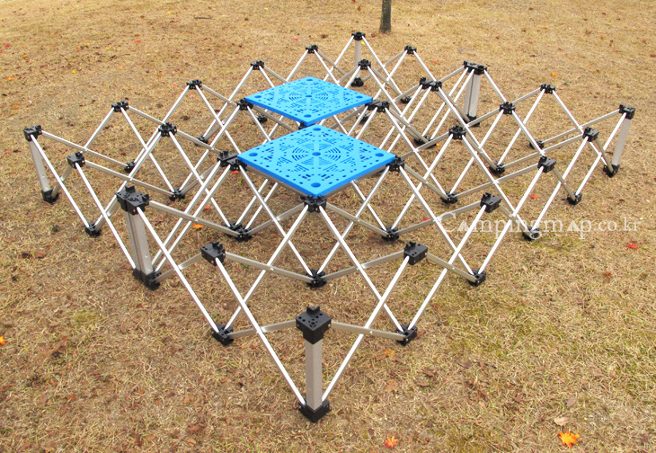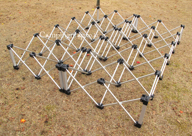 캠핑시 4X5사이즈가 가장 적당하나 두개 프레임을 이었을때 모습도 참고하실 수 있도록