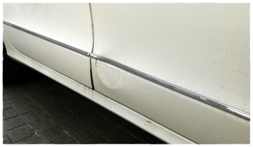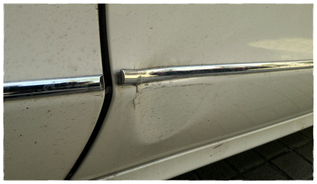 크롬몰딩이 깨지고 도장면도 손상된 상태입니다. 크롬몰딩은 교환해야 했구요, 도어는 판금후 전체도색으로 깨끗하게 복원후 출고하여 드렸습니다. 완성사진 올려드립니다.