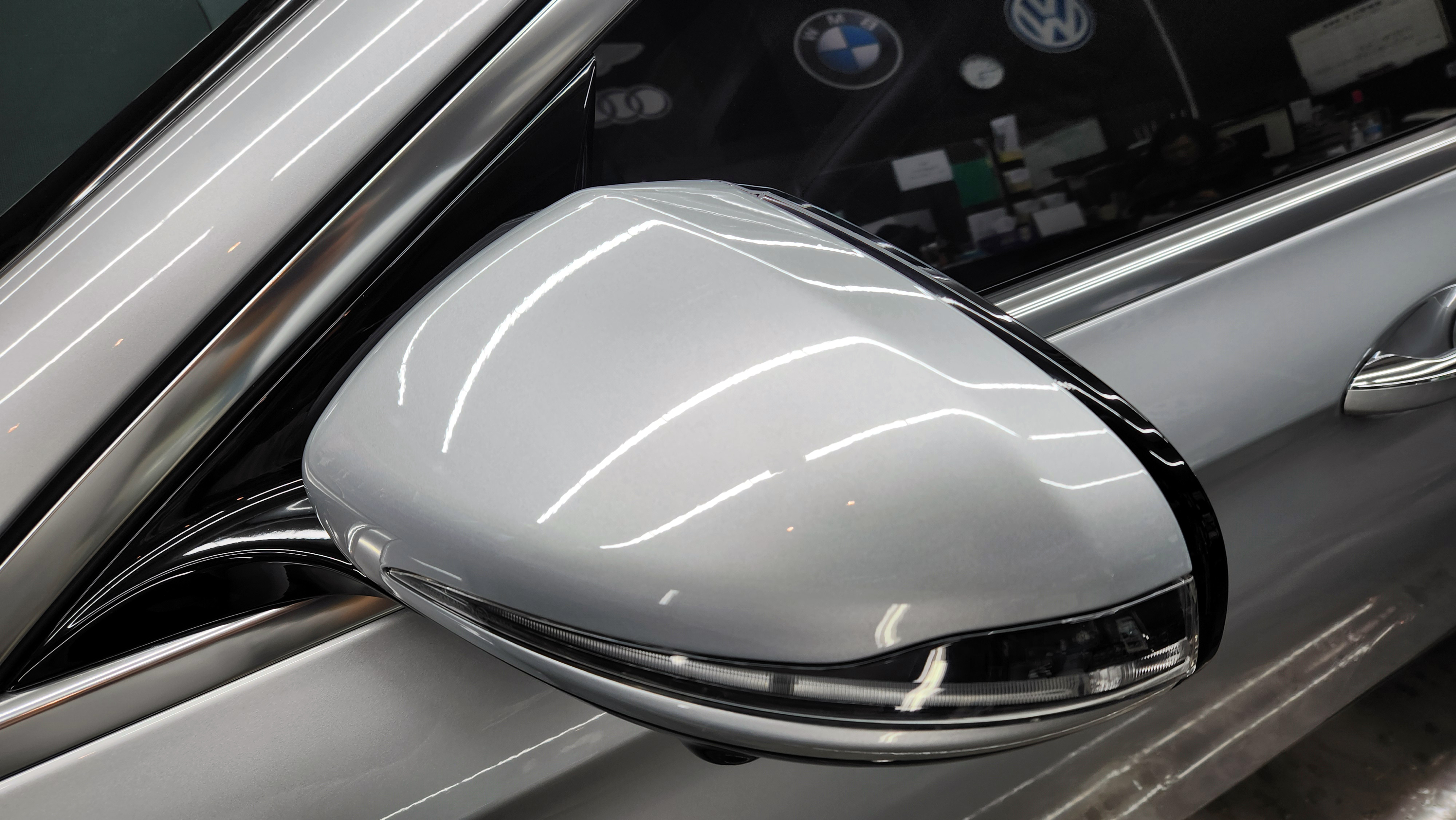 벤츠 E300 차량으로 사이드미러 커버의 손상때문에 입고하여 주셨습니다.